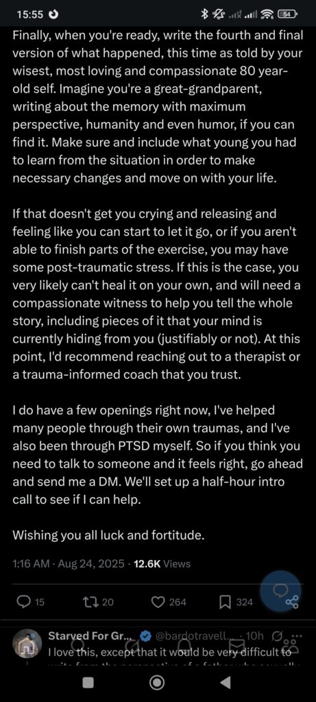 Und ist doch mal echte Hilfe oder ein gereifter Teilnehmer da, dann geht alles im Wahnsinn der Gruppe unter, oder Leute, die wirklich so etwas wie Genesung erreicht haben, werden massiv angegriffen.